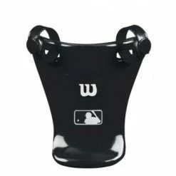 Tough, molded plastic in umpire throat guard won’t bend or break. 4″ with button-snap straps will fit any brand umpire mask. Available in black with MLB logo.